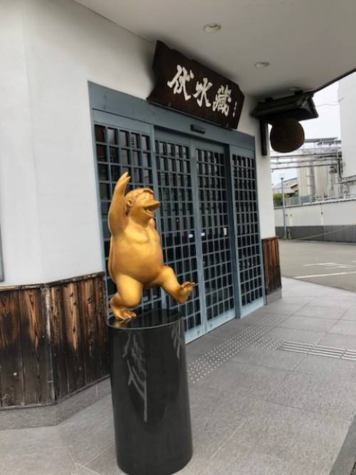 黄桜伏水蔵に到着すると、あのお馴染みのカッパのキャラクター像がお目見え。