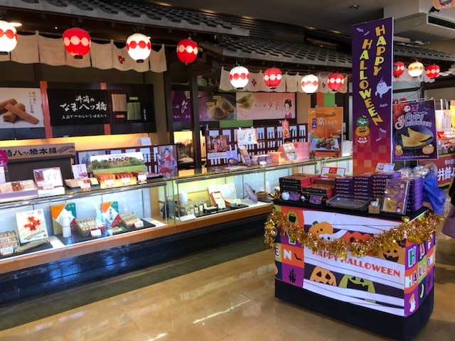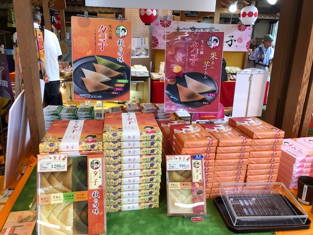 八ツ橋、生八ツ橋、ハロウィンパッケージのかぼちゃあんの八ツ橋や、秋限定の栗入り八ツ橋、芋あん八ツ橋、コラボ企画の八ツ橋など。中でも、目の前でたっぷりのあんこを包んでくれる手作り八ツ橋は、ここでしか買えないということで、大人気!
