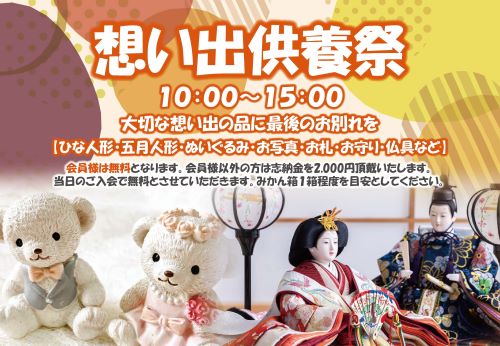 さらに、長年大切にされてきたお人形への感謝を込めた「人形供養」も併せて執り行います。